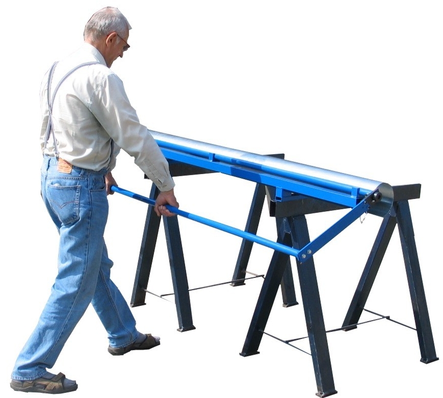 Zwijarka KZ-2 jest podstawowym elementem kompletu maszyn do produkcji rur i rynien o długości 2m. Grubość zwijanej blachy wynosi 0,6mm a minimalna średnica zwiniętej rury wynosi 85mm. Średnica zwinięcia nastawiana jest obrotami śruby, która przesuwa mechanizm wałków zwijających. Maszyna obsługiwana jest ręcznie. Przy konstruowaniu tej maszyny zastosowano obliczenia komputerowe, dzięki którym maszyna jest lekka i bardzo wytrzymała. Zwijarka ma unikalny patentowany system uginania walców zwijających, który eliminuje nierówność średnicy zwijania wzdłuż całej długości roboczej. Na zwijarce można skręcać z tym samym wynikiem blachy twarde (ocynkowane) jak i blachy miękkie (miedź itp.). Równomierność zwinięcia będzie zawsze ta sama, bo komputerem opracowana konstrukcja wałków obliczona jest tak, że podczas zwijania wszystkie wałki razem z blachą nieznacznie się podginają, żeby po zakończeniu zwijania się znów wyprostować. Ten oto patentowany sposób uginania wałków zapewnia również doskonałą jakość powierzchni po zwinięciu bez różnicy czy zwijamy blachę ocynkowaną albo miedzianną. Walec zwijający ma wykonane dwa rowki, z których jeden używa się do wykonania zatrzasku na rurze a drugi rowek używany jest przy zwijaniu rynny z wykonaną krawędzią. Masa całej maszyny wynosi 170kg.