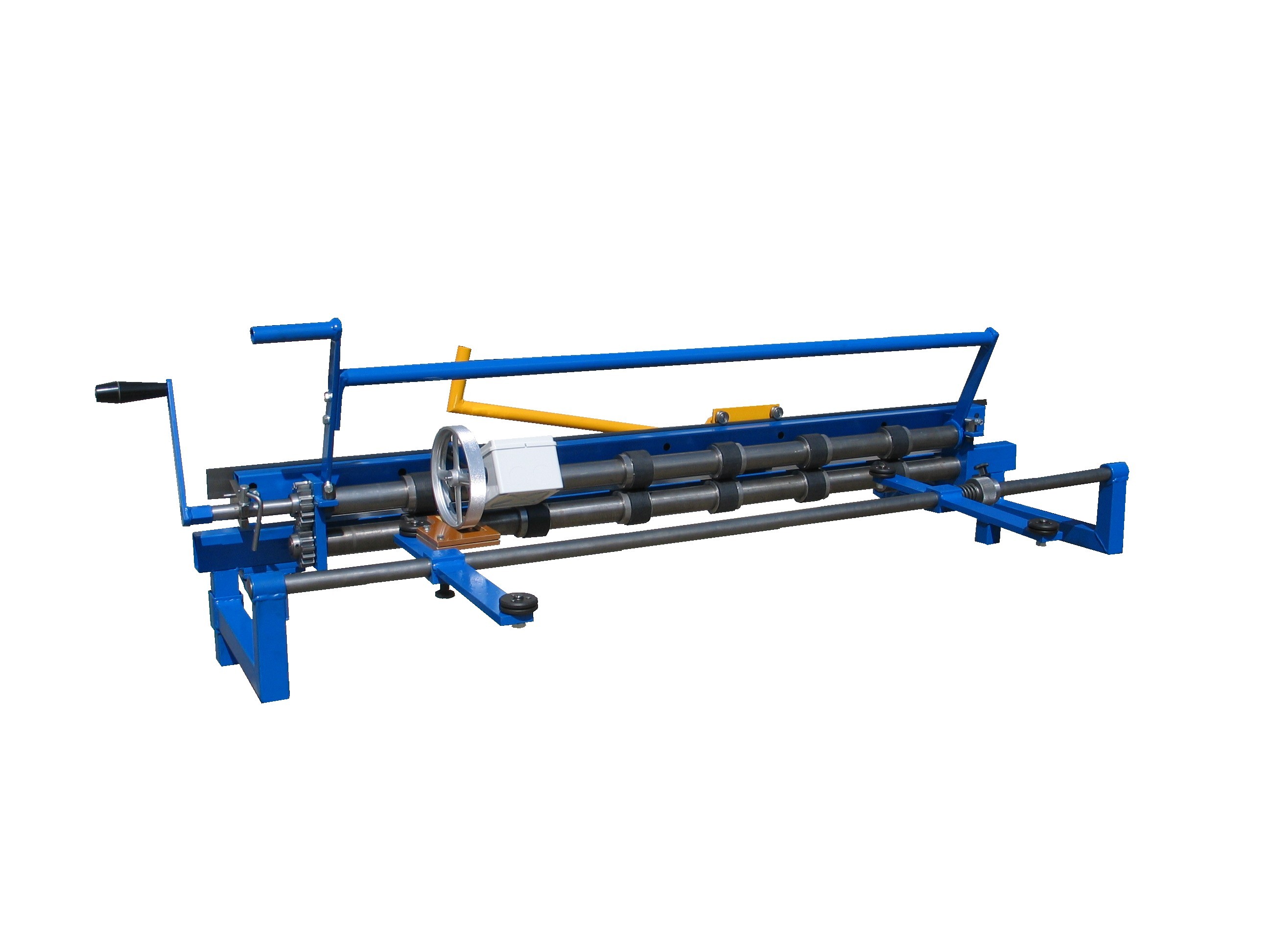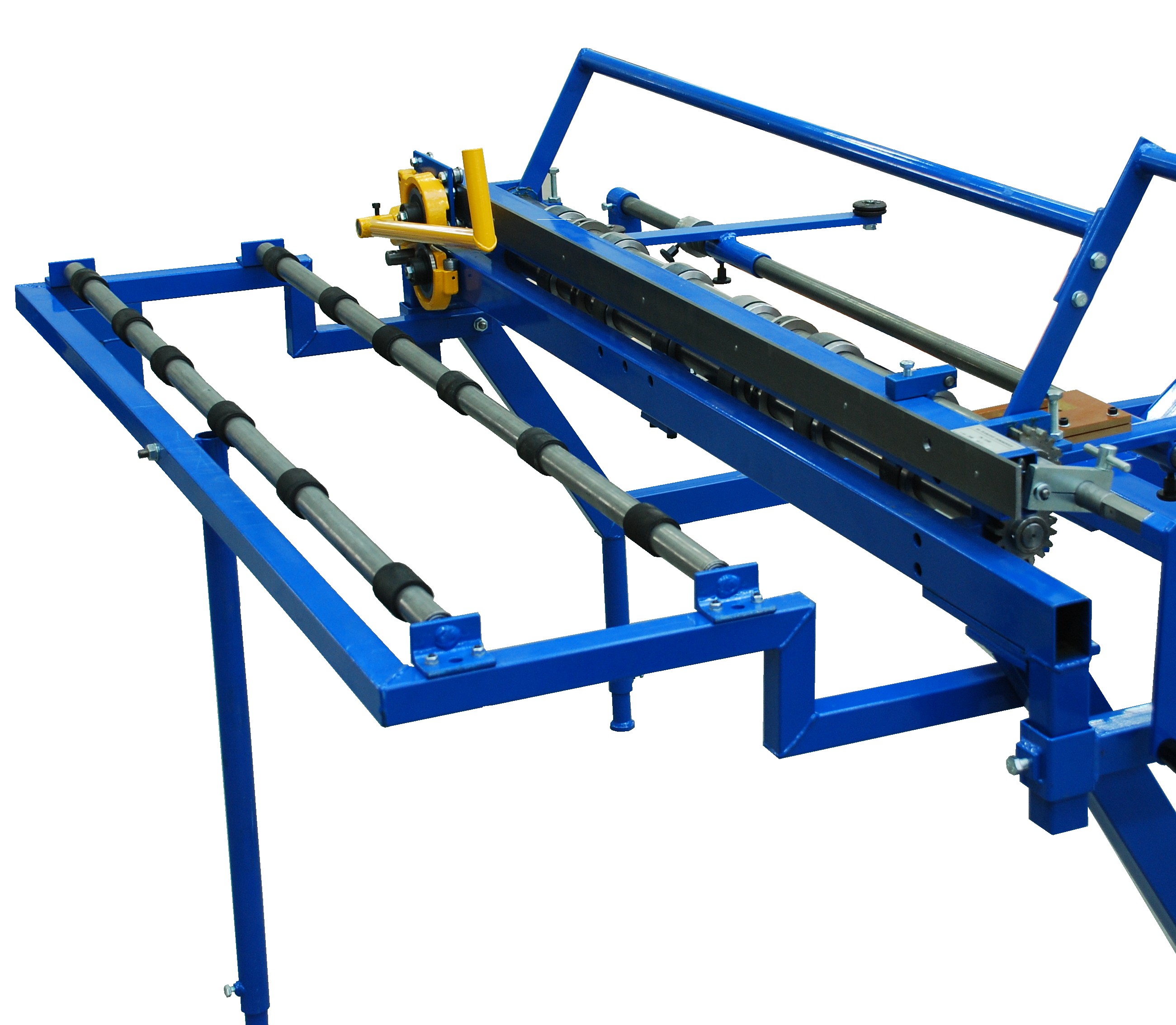 Blacha z kręgu wchodzi między walce wyciągarki, które po zaciśnięciu umożliwiają wyciąganie odwijanej blachy obrotami korbki. Wyciągarka standardowo wyposażona jest nożycami krążkowymi, krórymi można poprzecznie odciąć odwinięty arkusz blachy. Wyciągarkę można wyposażyć w numeryczny licznik odwinięcia, zatem praca przy odwinięciu określonej ilości blachy jest łatwa i dokładna. Na wyciągarkę można też zainstalować stosunkowo łatwo noże do wzdłużnego cięcia blachy przy jej wysuwaniu. Szerokość wyciąganego kręgu wynosi 1250mm. Ostatnim udoskonaleniem wyciągarki TK-1250 to boczny sprężynowy docisk, zapewniający zawsze kąt prosty poprzecznego odcięcia, którym eliminuje się niedokładne zwinięcie blachy w kręg i jego zmienną szerokość.